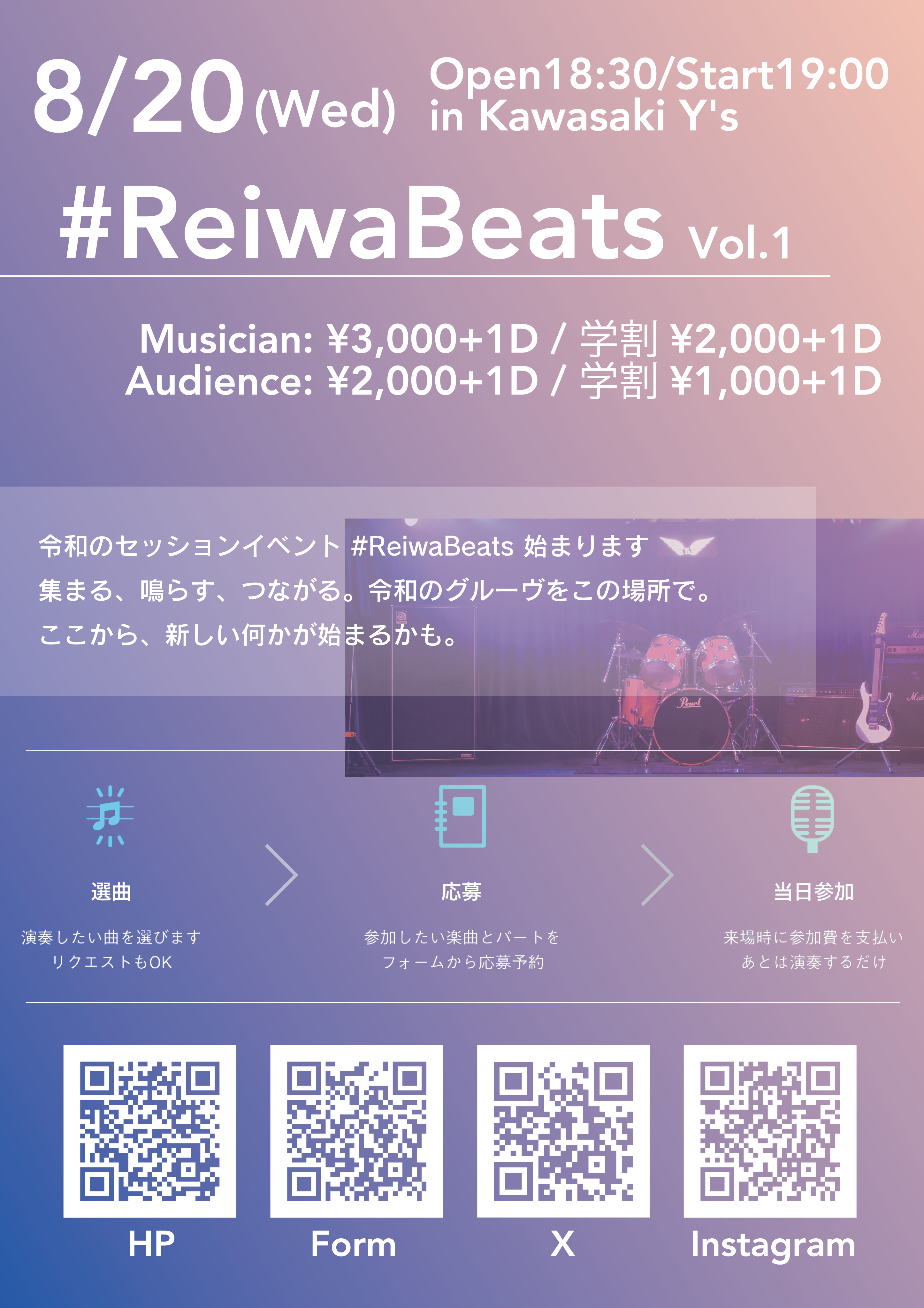 令和のセッションイベント #ReiwaBeats 始まります 集まる、鳴らす、つながる。令和のグルーヴをこの場所で。 ここから、新しい何かが始まるかも。